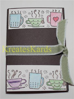 I used the Stampin' Around Standard Wheel for the coffee and tea images. Then colored them in with our Watercolor pencils (item #101879). I used them just like a pencil (no water added this time).